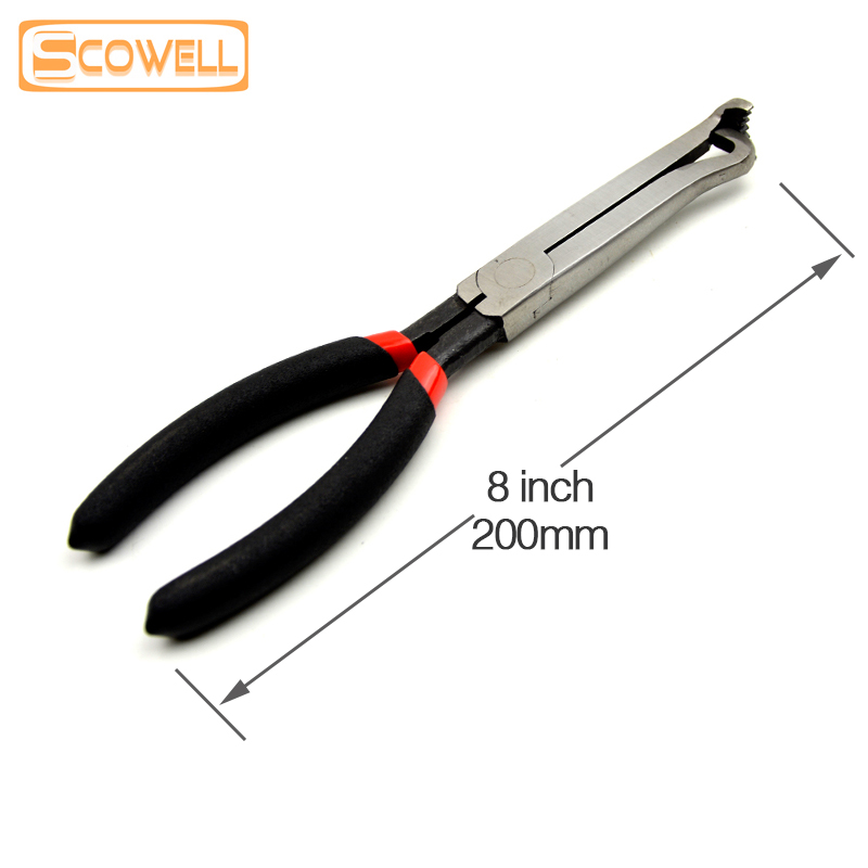 End diagonal cutting plier side cutting nipperElectrical Disconnect Long Plug Removal Pliers For Car Connectors Cable Clamp Removal Tool Car Repair Tools, suitable for disconnecting wire Harness separation, Curved rake jaw desgin for convenientand secure gripping of pushtab style plugs