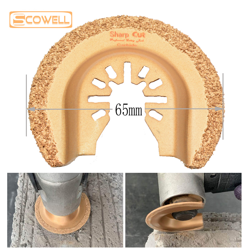 3. Triangle blade main used for grinding concrete,move grout of tile back. half circle blade used for moving grout in the gap of both tile.